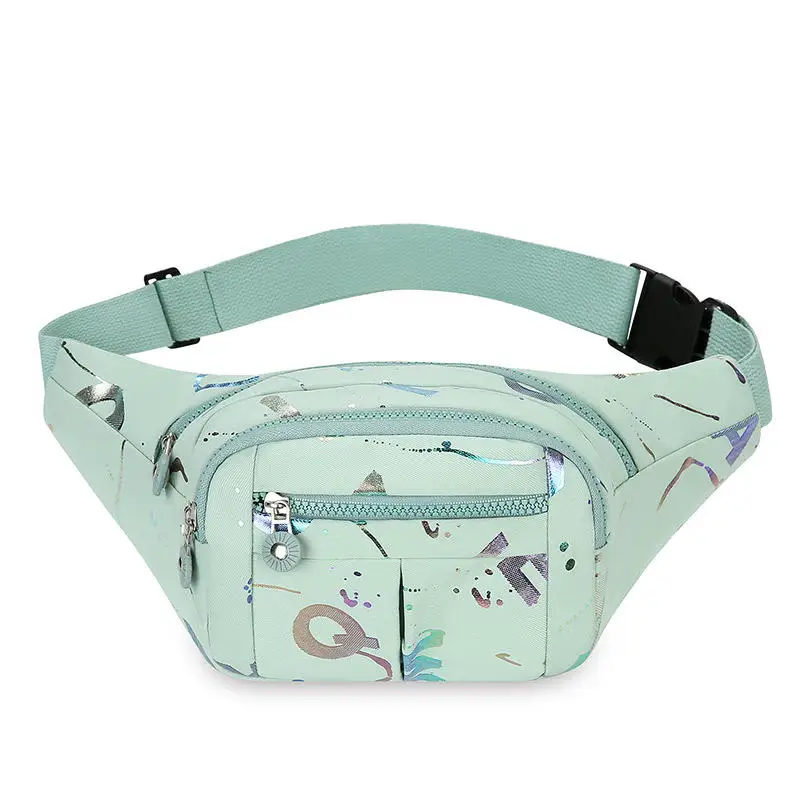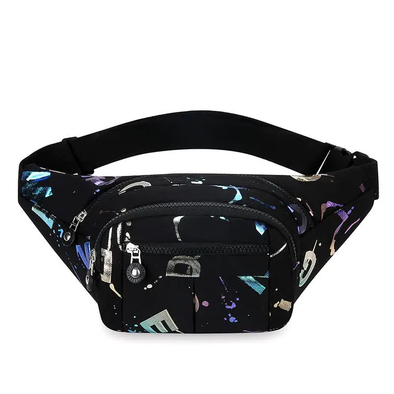 Casual Trendy Waist Bag Women Lightweight Oxford Fabric Print Stitching Multi-Pocket Fanny Pack Daily Commute Bags