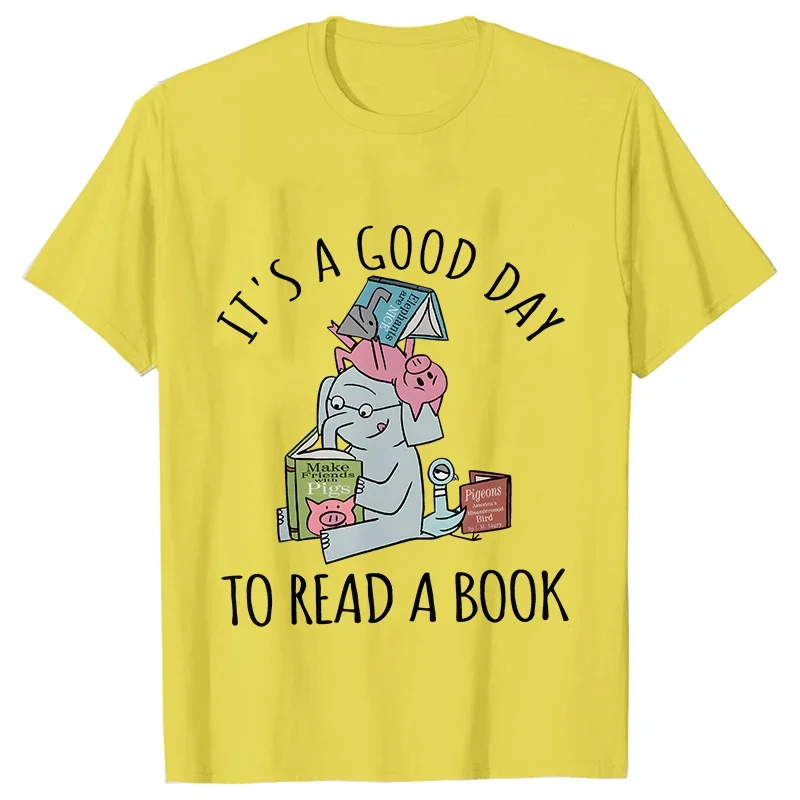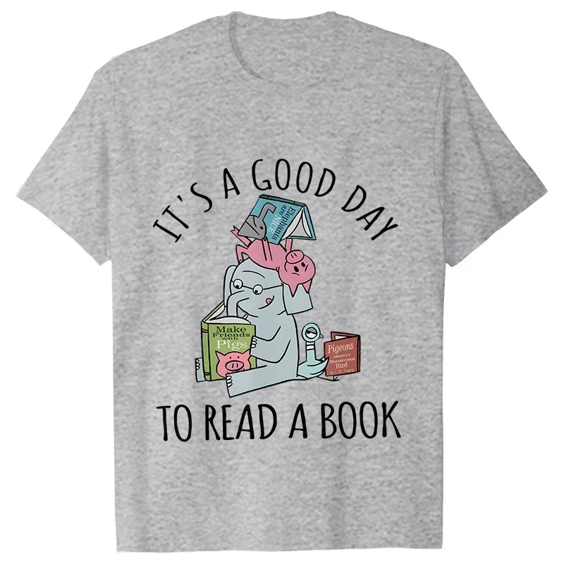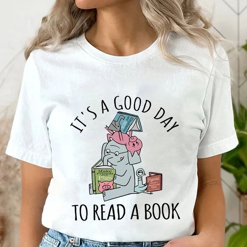 Today is a good day for reading Women's T-shirt with elephant cartoon print women's retro short sleeved round neck T-shirt